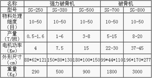 SG系列強力破骨機是我公司新開發(fā)研制的爪形強力破骨機。該機刀架優(yōu)化設(shè)計,分散受力度,提高了每片刀的剪切力和沖擊力,刀具經(jīng)特殊熱處理,耐磨性能優(yōu)越,使用壽命長;操作簡單、清洗維護方便,換刀簡單快捷。更適合干、鮮牛大骨、豬大骨、羊骨等各種動物大骨的破碎。